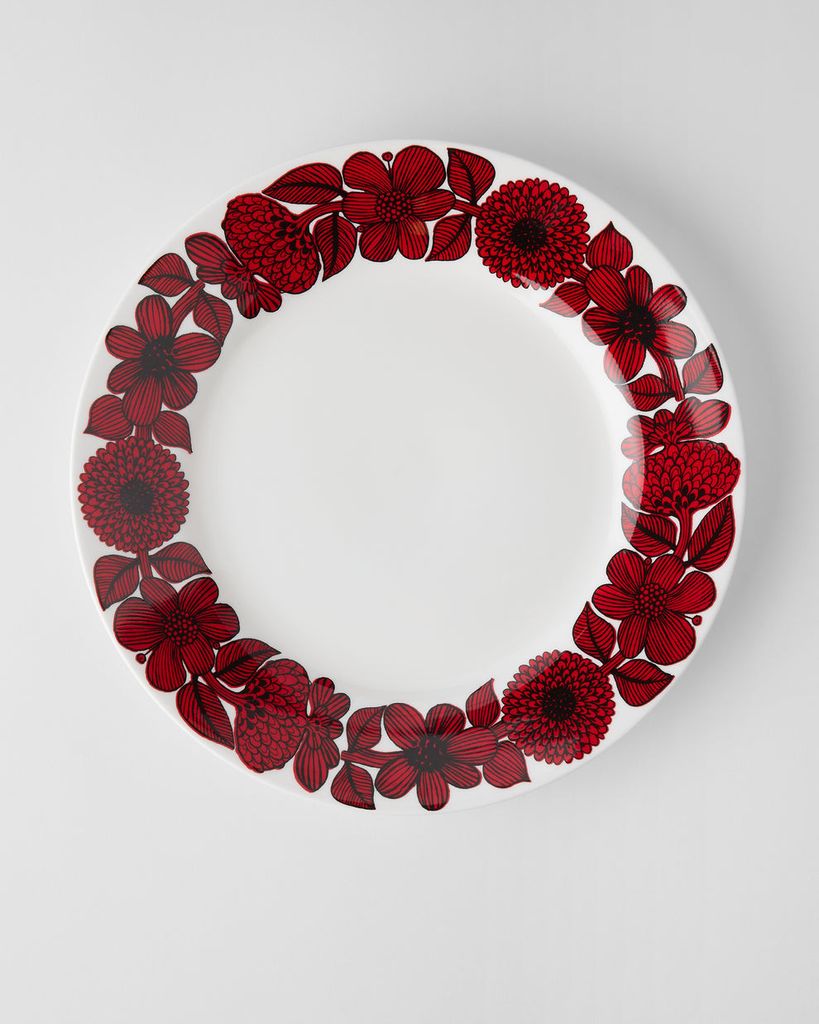 Röd Aster Tallrik 28 cm med bräm är en hyllning till svensk porslinskonst i sin mest färgstarka och levande form. Det ikoniska röda blommönstret av Stig Lindberg ger dukningen karaktär och djup. Med sin generösa storlek och dekorativa bräm passar denna tallrik utmärkt till både middagsservering och festligare tillfällen – en perfekt blandning av tradition, färg och funktion.