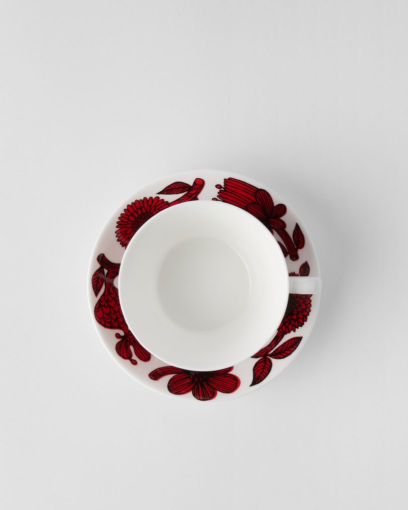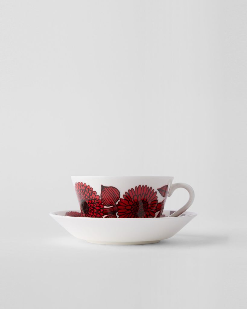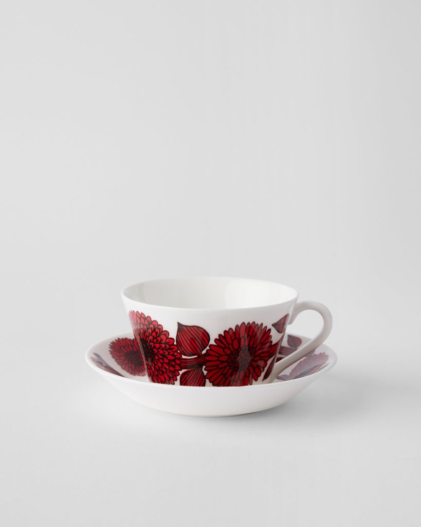 Röd Aster Tegods, konmodell, är en hyllning till svensk formgivning i sin mest uttrycksfulla form. Med det livfulla röda blommönstret, skapat av Stig Lindberg, blir varje tekopp ett konstverk på bordet. Den konformade koppen och det matchande fatet bjuder in till en varm, estetiskt tillfredsställande stund – oavsett om det är morgonteet, eftermiddagspausen eller kvällsro.