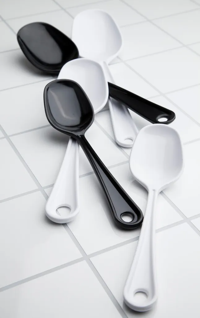 Slittålig serveringssked i svart färg, tillverkad i melaminplast med ett praktiskt hål för enkel upphängning. Skeden passar utmärkt i såväl köket som vid buffébordet. Framtagen för att klara daglig använding och rengöring i diskmaskin.