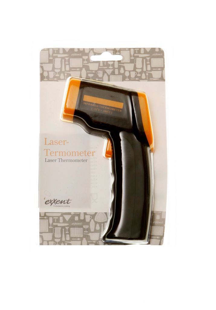 Praktisk termometer laser infraröd som kan mäta -32C till +300C. Perfekt för den obligatoriska temperaturkontrollen av livsmedel.