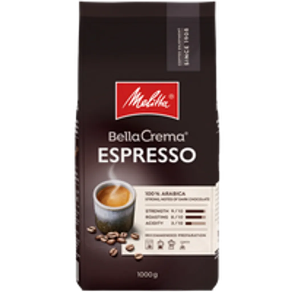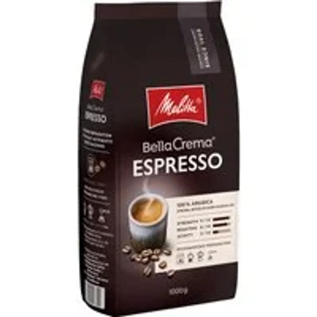 Melitta Bella Crema Espresso 1 kg är ett kaffe för den som älskar djupa, intensiva smaker och en sammetslen crema. Denna 100 % arabicablandning är varsamt rostade till perfektion för att framhäva rika chokladtoner, lätt kryddighet och en kraftfull kropp – precis som en riktig espresso ska vara. Perfekt för helautomatiska maskiner, espressobryggare eller mokabryggare.