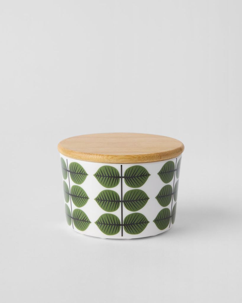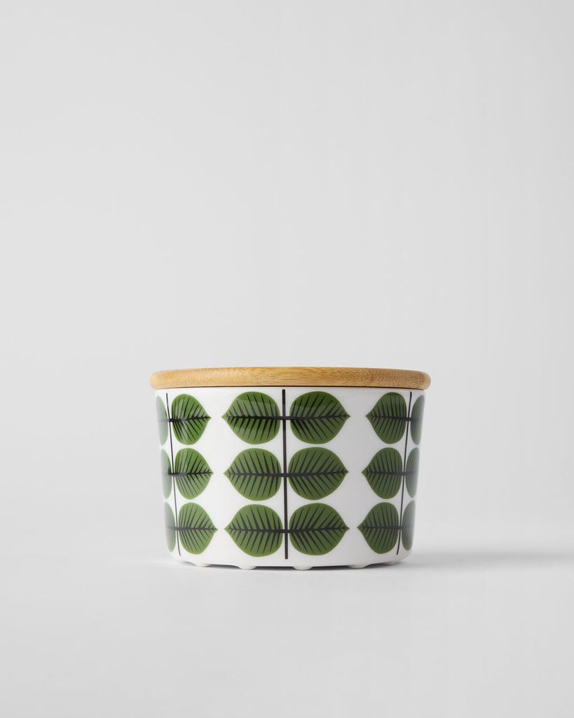 Gustavsberg BERSÅ burk 10 cm, rak med lock är den perfekta kombinationen av funktionalitet och ikonisk formgivning. Med Stig Lindbergs älskade gröna bladmotiv och en rak, modern siluett, blir denna burk inte bara en praktisk förvaringslösning – utan också ett stilfullt inslag i ditt kök eller på ditt öppna hyllplan.