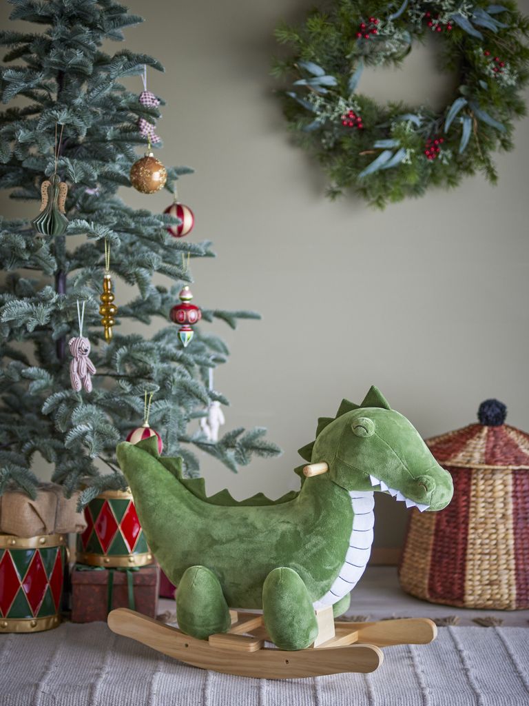 Mjuk och lekfull krokodil som förgyller barnrummet. Perfekt för lekstunder eller som dekoration.