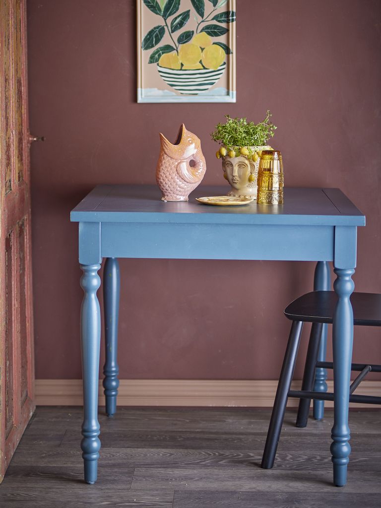 Bloomingville Bassy matbord är den perfekta lösningen för dig som söker ett stilrent och kompakt matbord. Tillverkat av högkvalitativt granträ, erbjuder detta bord en robust och hållbar konstruktion som står emot tidens tand. Den matta blå finishen ger en modern touch, samtidigt som de elegant svarvade benen tillför en klassisk charm.
