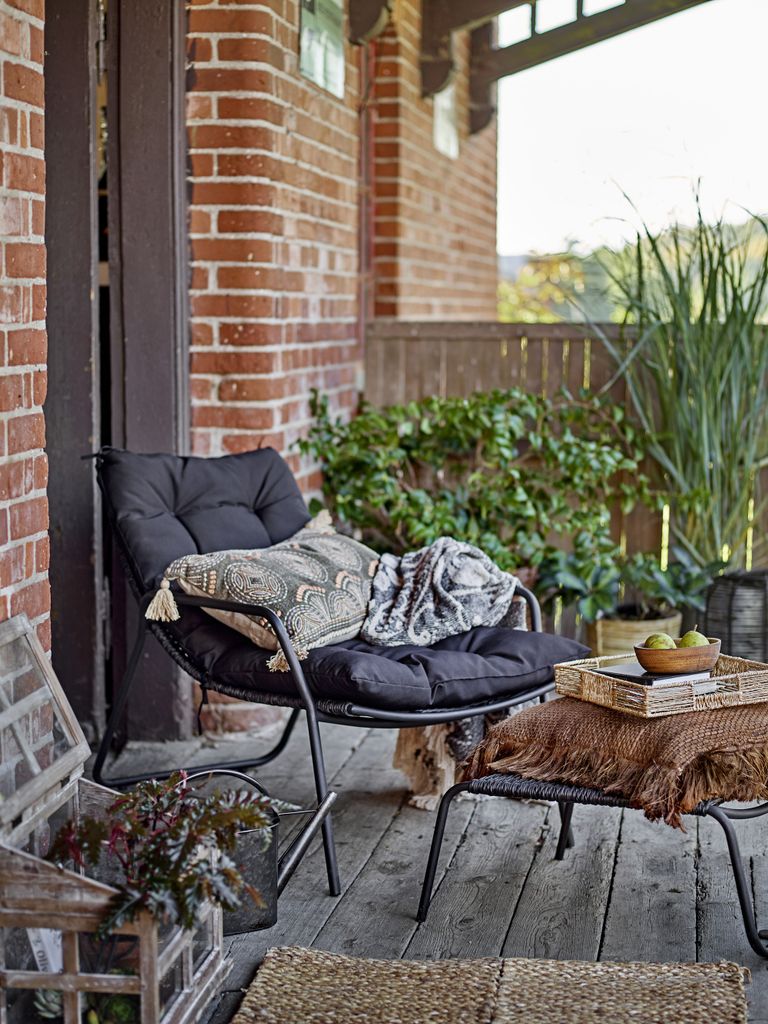 Bloomingville Boel däckstol med pall, svart metall