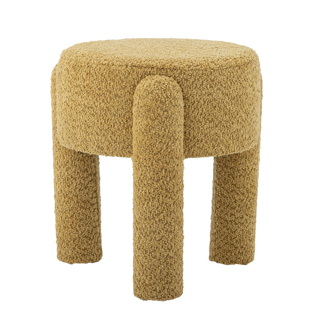 Bloomingville Bruno pall är en stilren och mångsidig möbel med klädsel i mjuk polyester i en varm gul nyans. Den unika designen gör den till ett iögonfallande inslag i vilket rum som helst.