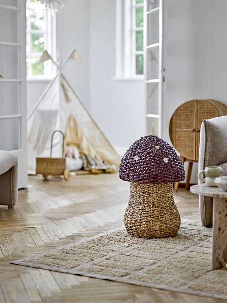 Upptäck Bloomingville Corintha korg, en charmig och multifunktionell förvaringslösning för barnrummet. Denna korg är utformad som en dekorativ svamp, vilket gör den till ett lekfullt inslag i varje rum. Tillverkad av slitstarkt sjögräs, bjuder den på en naturlig känsla och hållbarhet.