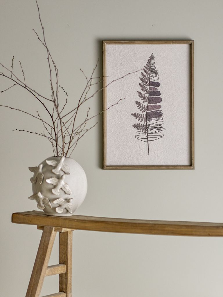 Bloomingville Corval Illustration med Ram är en harmonisk och naturlig konstverk som förgyller vilken vägg som helst. Den eleganta svarta ramen i granträ lyfter fram det botaniska trycket på pappret, vilket ger en sofistikerad och jordnära känsla. De naturliga och bruna nyanserna i motivet skapar en lugnande och estetiskt tilltalande atmosfär.