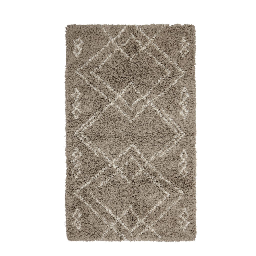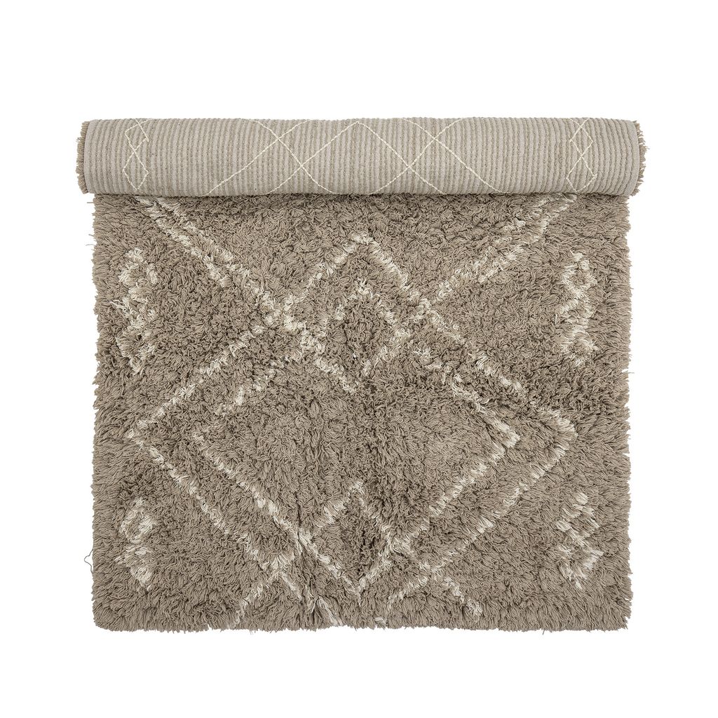 Edea matta i mjuk brun bomull med grafiskt tuftat mönster för en mysig atmosfär i hemmet.