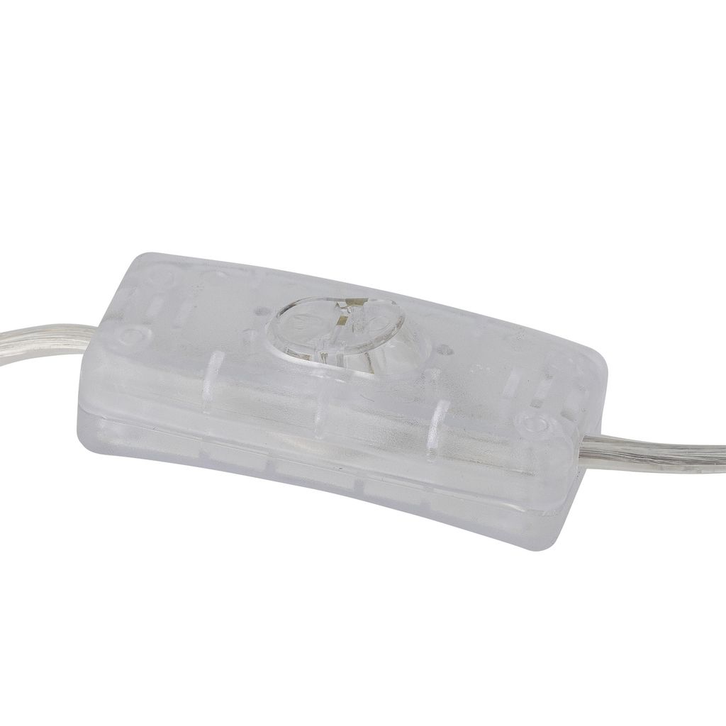 Lampskärmen är tillverkad i ett neutralt linneaktigt tyg, vilket bidrar till en mjuk och varm ljusspridning. Lampan är utrustad med en praktisk genomskinlig strömbrytare på sladden för enkel användning.