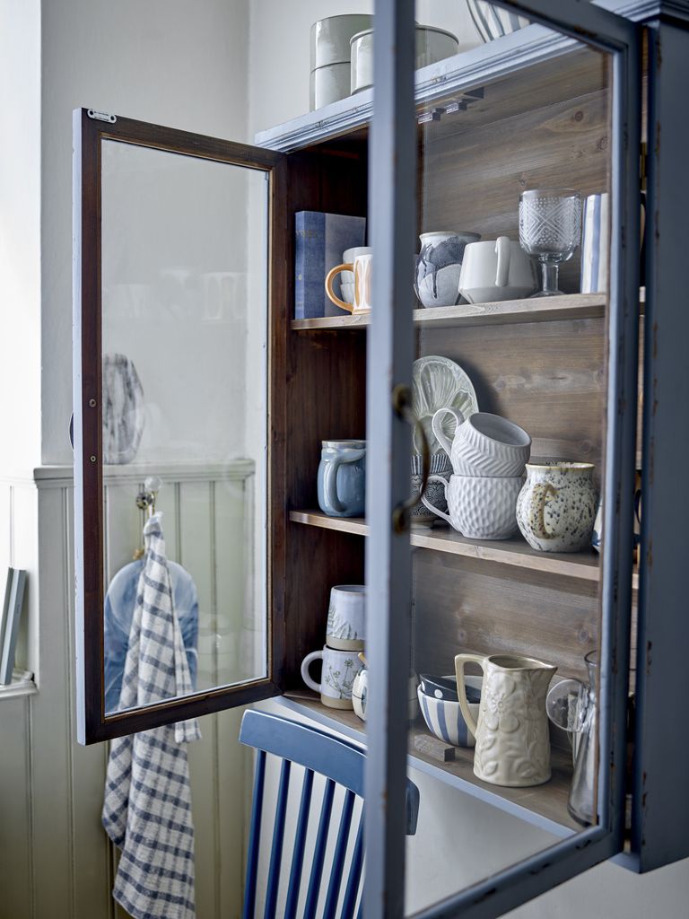 Bloomingville Hazem skåp är en vacker och funktionell möbel som kombinerar stil och praktisk användbarhet. Skåpet är tillverkat i robust granträ och har en unik blå färg som ger en distinkt, åldrad look. Glasdörrarna gör det lätt att visa upp dina favoritsaker, från porslin till dekorativa föremål, vilket ger varje rum en personlig touch.