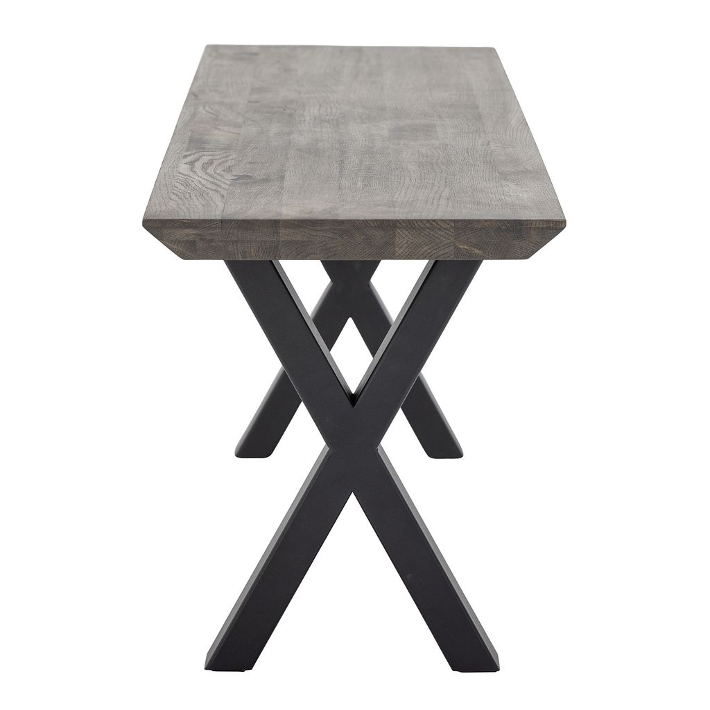 Med sina mått på L190xH47xW37 cm erbjuder denna bänk generöst med plats, samtidigt som den är smidig att placera i olika miljöer. Den bruna färgen i kombination med den eleganta X-formade basen i svart metall ger en modern och stilren look, vilket förstärks av det FSC® 100% certifierade träet som garanterar hållbarhet och miljöansvar.