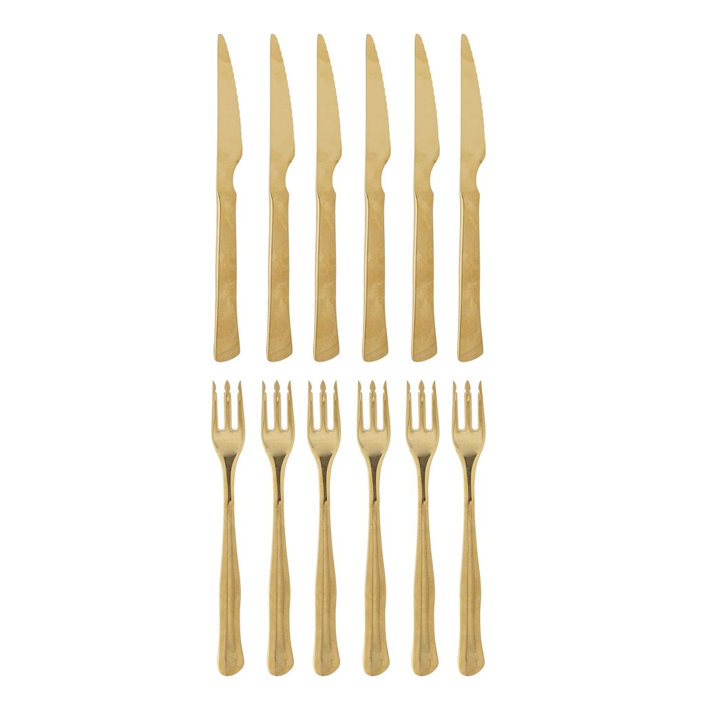 Förhöj din matupplevelse med Bloomingville Ollin Stekbestick. Detta set erbjuder elegans och funktionalitet med dess vackra guldglans och robusta design. Tillverkade av högkvalitativt rostfritt stål, dessa bestick garanterar både stil och hållbarhet.