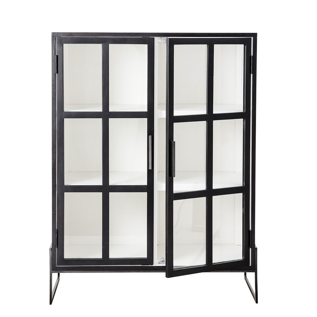 Upptäck Bloomingville Opal Skåp, en fantastisk förvaringslösning som kombinerar stil och funktion. Tillverkat av högkvalitativ svart ek, ger detta skåp en tidlös och elegant känsla till ditt hem. De eleganta glasdörrarna med sex rutor vardera förvandlar skåpet till ett vackert skyltfönster, perfekt för att visa upp dina älskade föremål på de vita hyllorna.