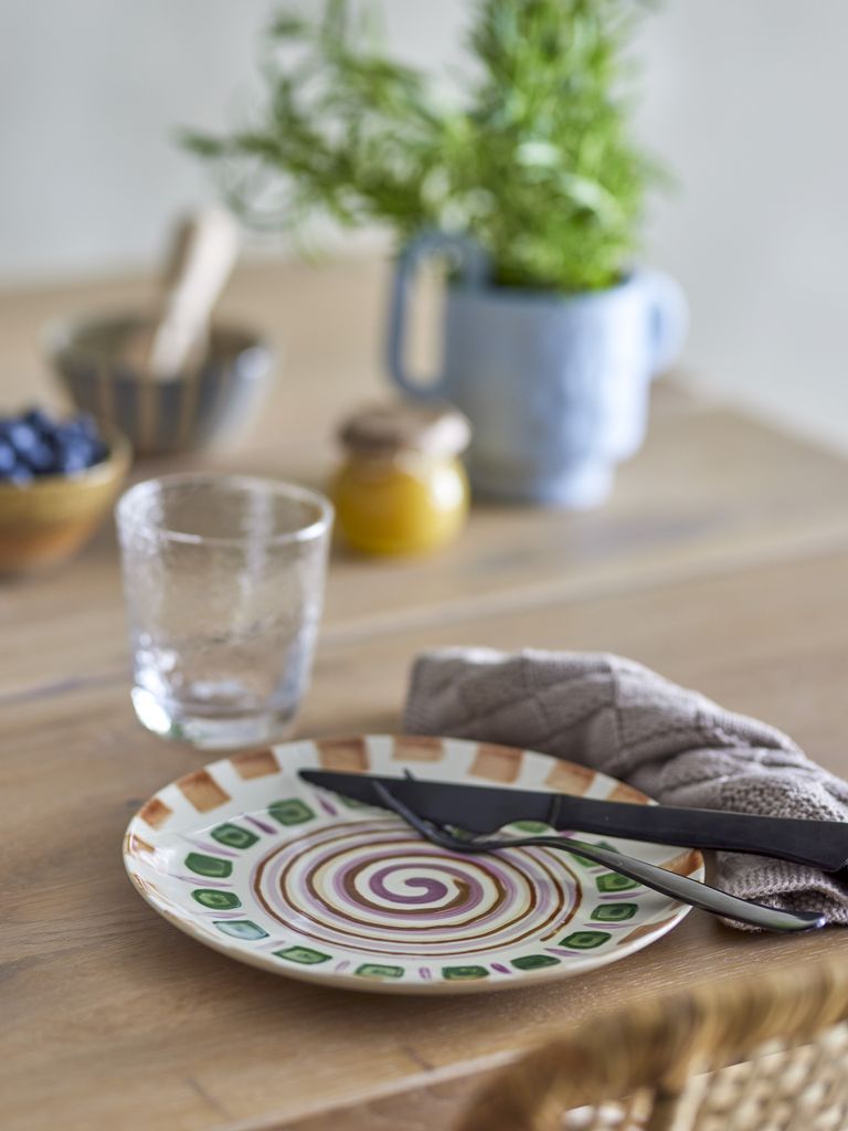 Handmålade stengodstallrikar från Bloomingville med unika mönster i vackra färger. Flerpack med fyra tallrikar.