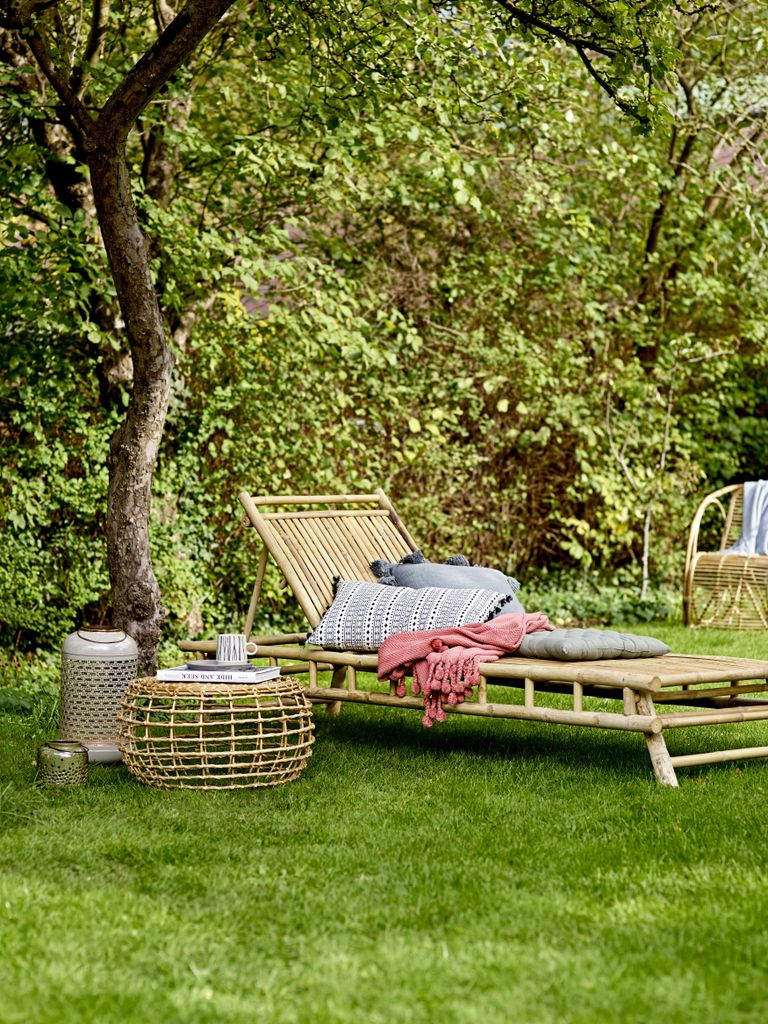 Sole Dagbädd från Bloomingville är en vacker och avskalad möbel tillverkad i bambu för ett naturligt, varmt och avslappnat uttryck. Den justerbara ryggdelen gör det enkelt att hitta en skön position, oavsett om du vill ligga ner och vila eller luta dig tillbaka med en bok och en kopp te. Den luftiga designen och det organiska materialet skapar en harmonisk känsla som lyfter altanen, uterummet eller en rofylld plats i trädgården.
