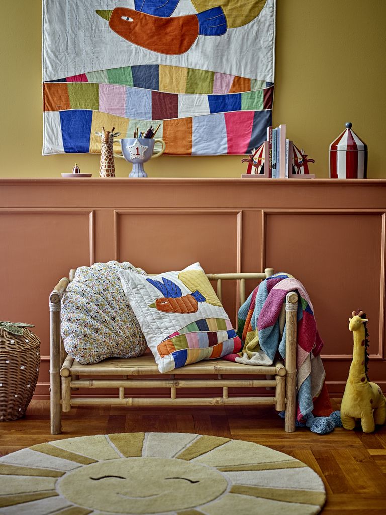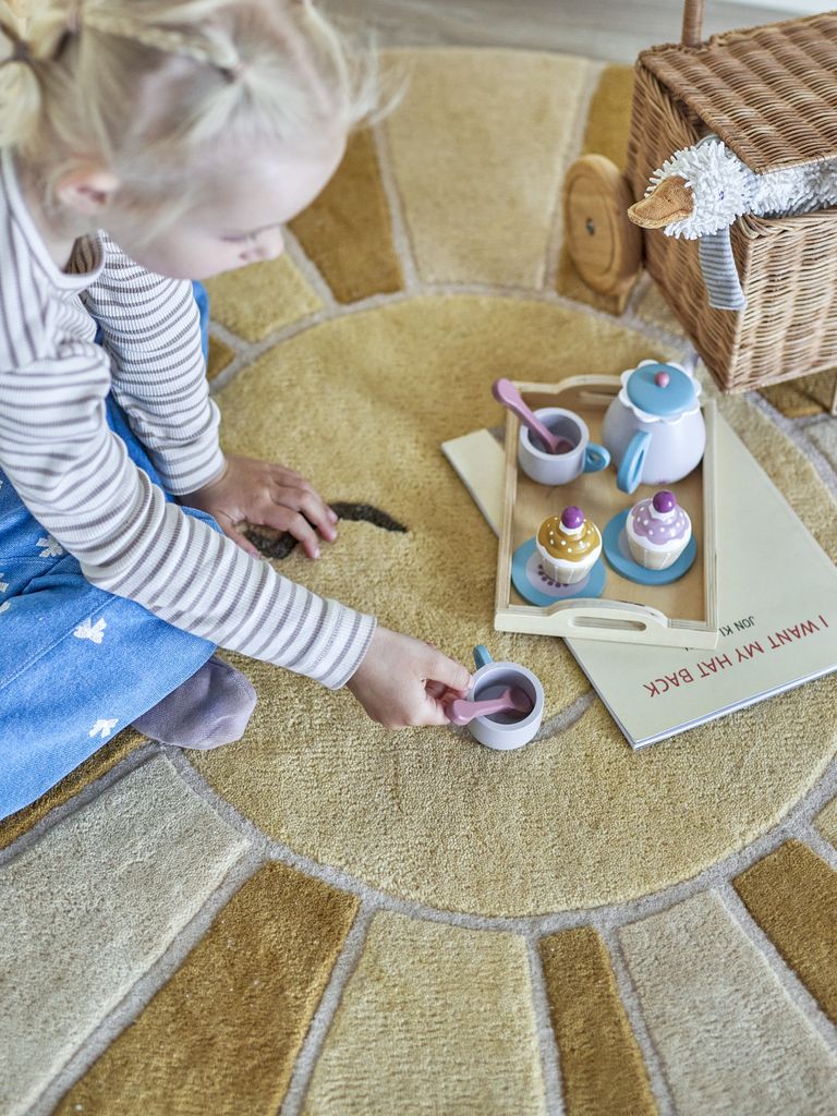 Upplev en mysig och inbjudande atmosfär i barnrummet med den charmiga Bloomingville Sun mattan. Tillverkad av mjuk ull, har denna runda matta en vänlig sol som sprider värme och glädje med sina varma gula nyanser.