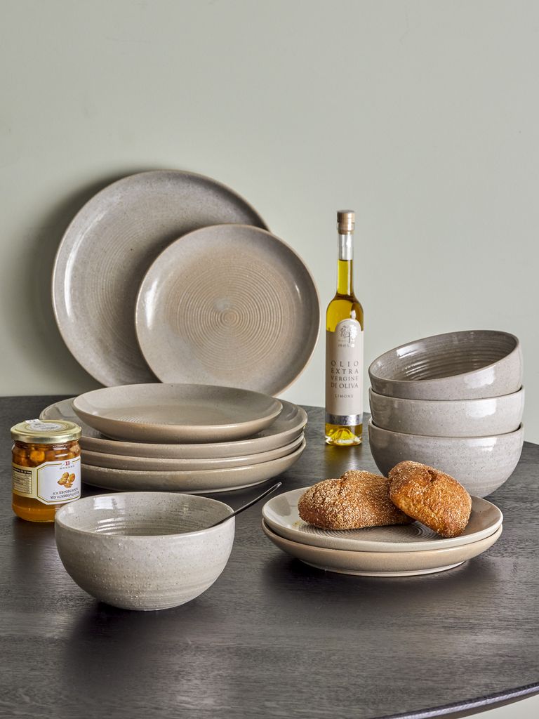 Stilrent servisset från Bloomingville i stengods med nordisk design. Grå nyanser i glasyren ger djup och unikt utseende.
