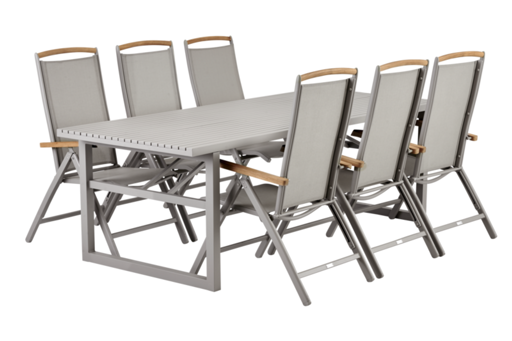Upptäck Brafab Andy Positionsstol Khaki, en modern och funktionell stol för din uteplats. Denna stol är designad med en pulverlackerad aluminiumstomme som inte rostar, vilket ger hållbarhet och stil. Ryggstödet är tillverkat i slitstark textilene för optimal sittkomfort, medan armstöden i teak ger en naturlig och elegant känsla. Den subtila khakifärgen gör stolen enkel att matcha med många av Brafabs bord och omgivande miljöer.