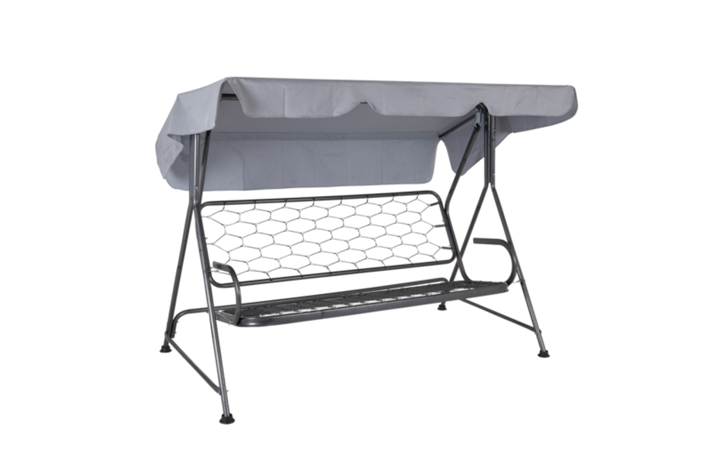 Stativet är tillverkat av förzinkat och epoxylackerat stål, vilket garanterar hållbarhet och vädertålighet. Hammocken har en stilren grå design som lätt smälter in i olika utomhusmiljöer.