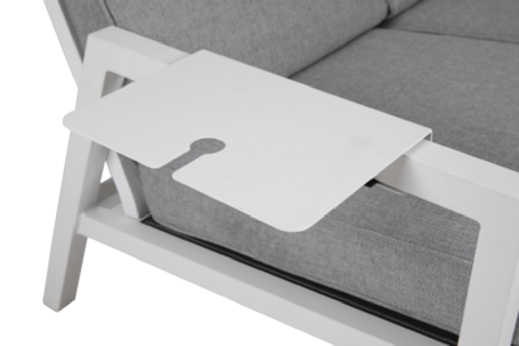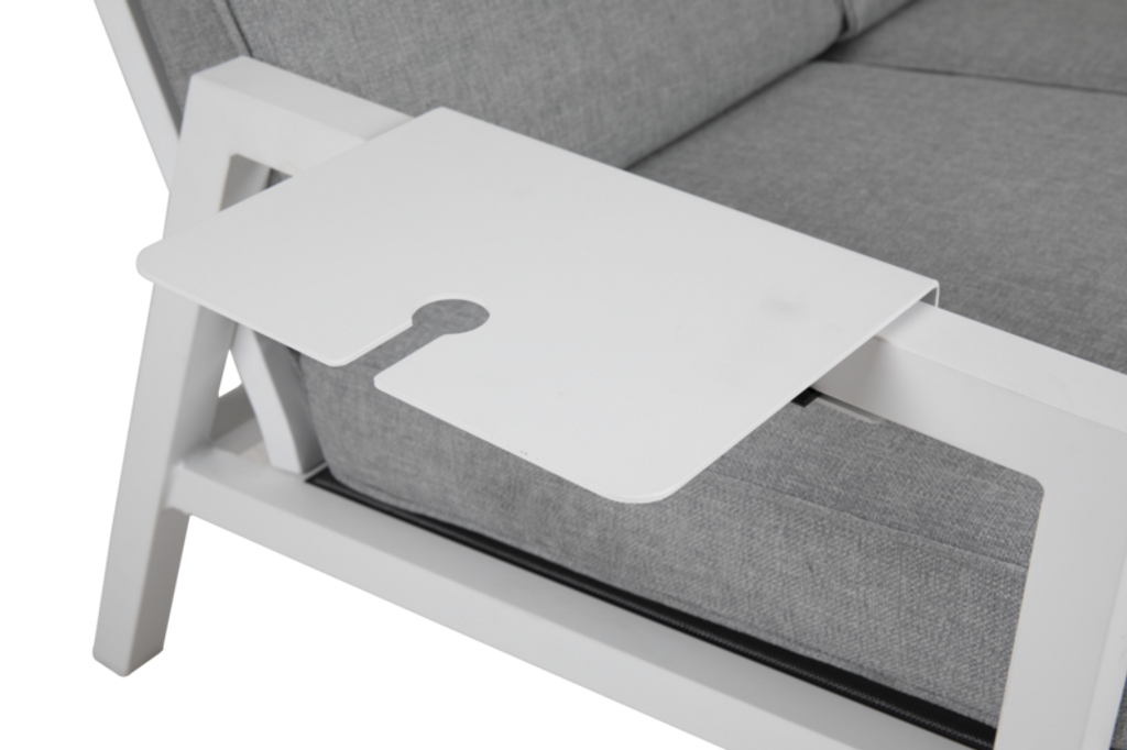 Elegant och flexibel brickbord i vit aluminium, perfekt för uteplatsen.