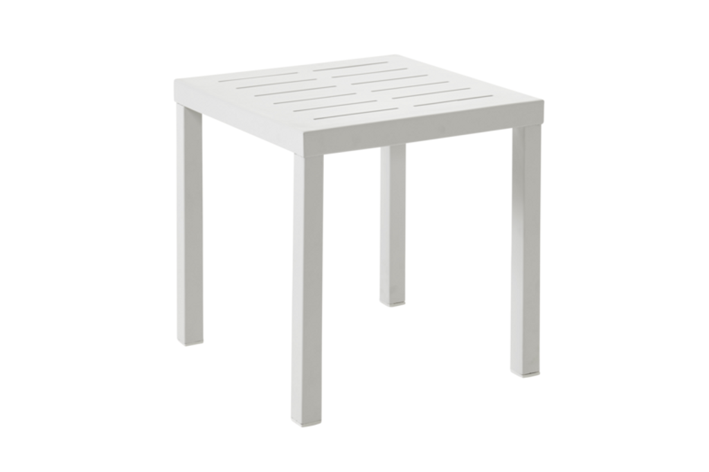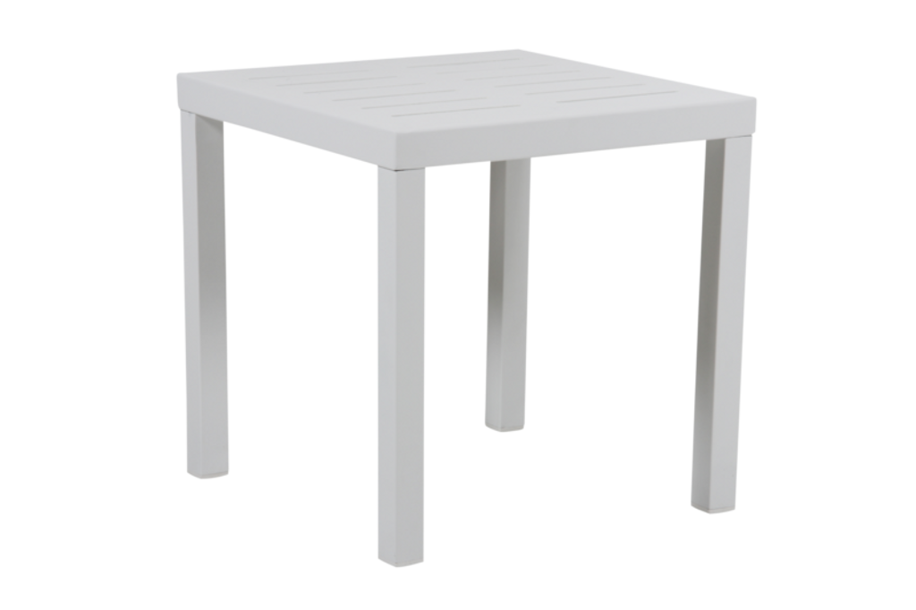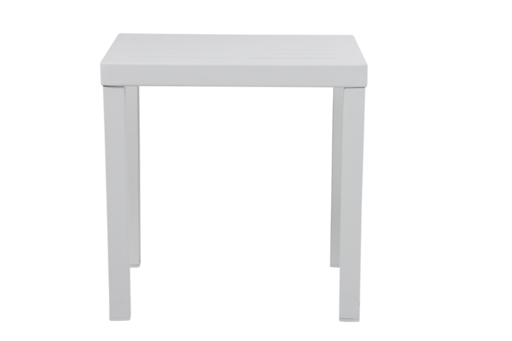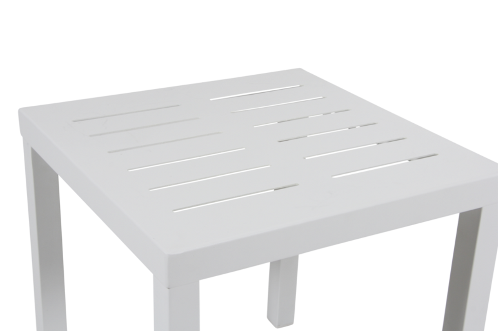 Elegant sidobord i vit pulverlackerad aluminium, perfekt för utomhusbruk. Del av flexibla Belfort-serien.