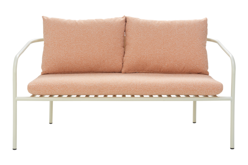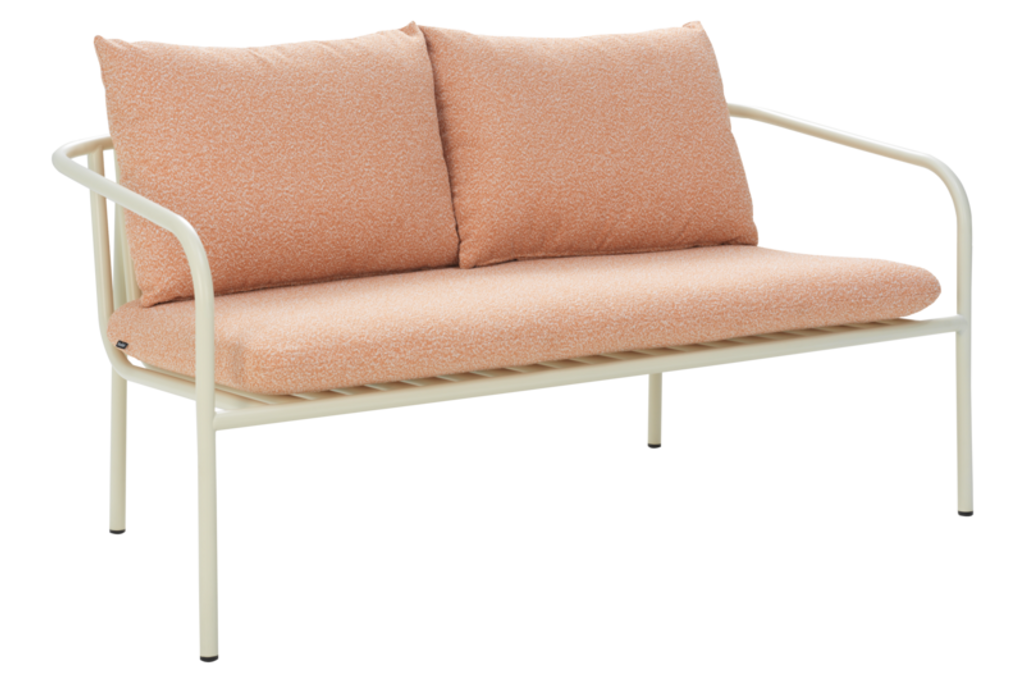 Upptäck Brafab Bendt Soffa i den sofistikerade färgkombinationen Pearl White och Teddy Orange. Denna soffa kombinerar tidlös elegans med en modern, öppen design som ger en sval och luftflödesvänlig miljö även under heta sommardagar. Med en konstruktion av tåligt aluminium och mjuka polyesterkuddar, är den skapad för att tåla väder och vind, vilket gör den idealisk för utomhusbruk.