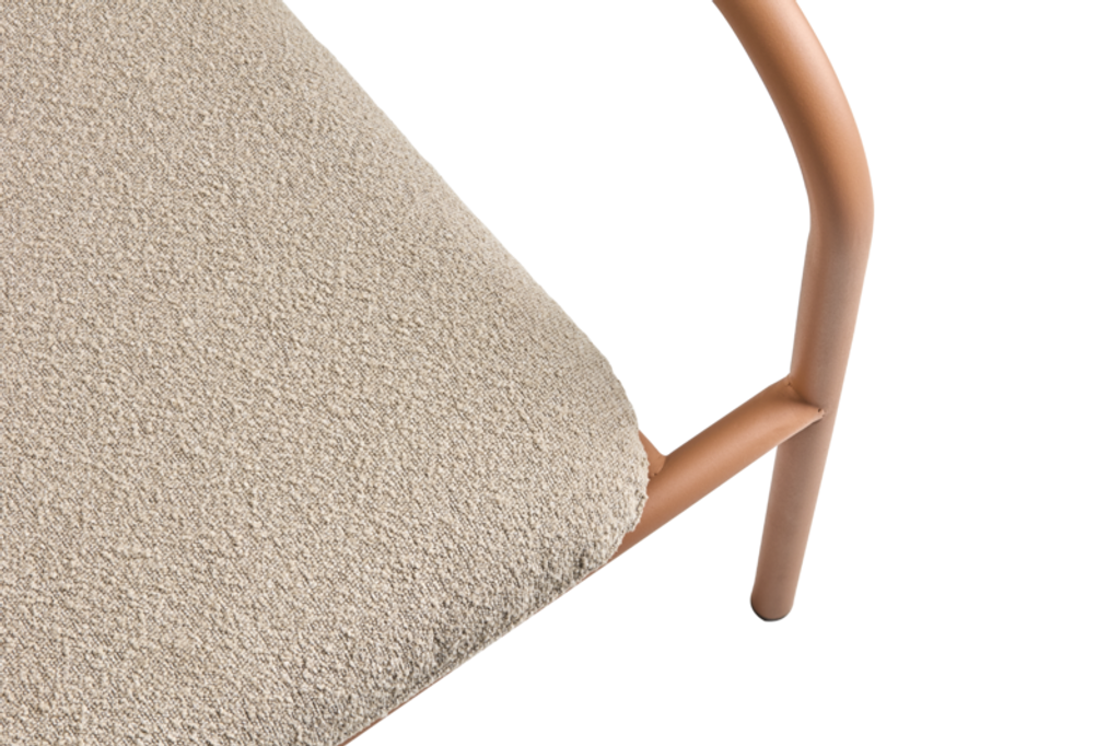 De mjuka dynorna i teddy-tyg ger en lyxig komfort och är lätt att matcha med olika utomhusmiljöer tack vare sin subtila beige och peach färgkombination.