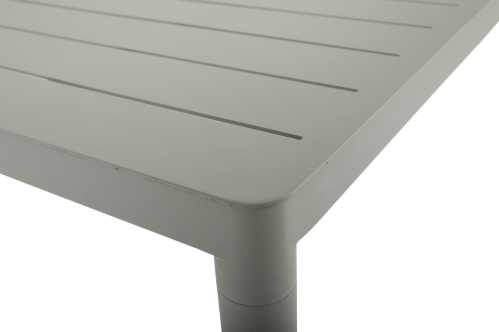 Modernt och stilrent matbord i tålig aluminium, perfekt för din utomhusmiljö året runt.