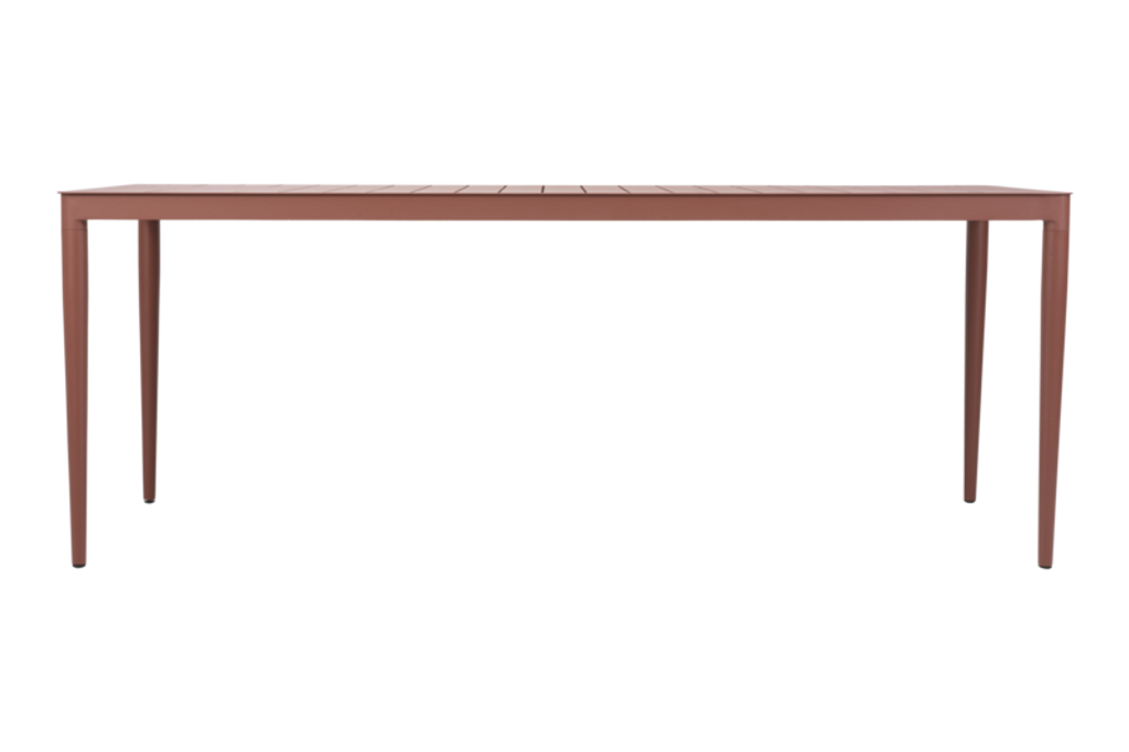 Upplev den moderna storstadskänslan i din trädgård med Brafab Bigby Matbord i den trendiga färgen Zin Red. Bordet mäter 90x195 cm och är tillverkat i slitstark aluminium, vilket säkerställer en lång livslängd och motståndskraft mot väder och vind. Den minimalistiska designen gör det till ett perfekt komplement till både soliga sommarbruncher och mysiga höstmiddagar utomhus.