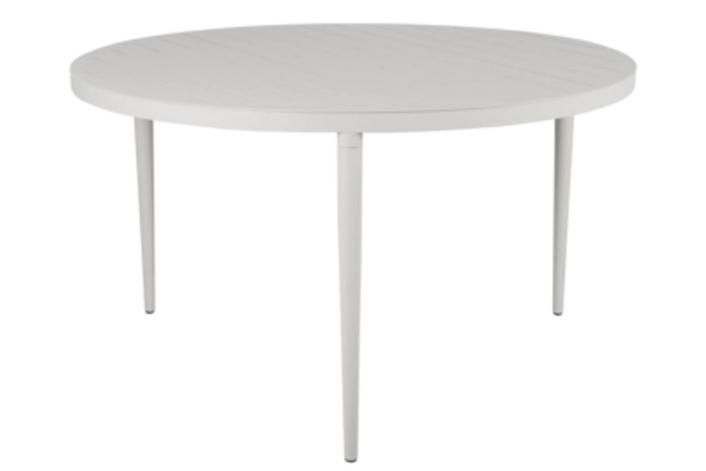 Stilrent matbord i tålig aluminium, perfekt för året runt användning utomhus.
