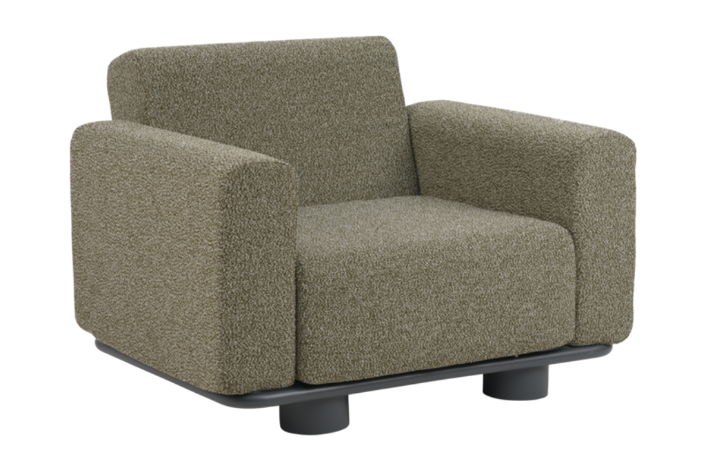 Upplev komfort och stil med Brafab Bolster fåtölj i nyansen Antracit och Teddy Verde. Denna fåtölj kombinerar inomhuskomfort med utomhuslivets krav. Den har en robust aluminiumram i antracit som säkerställer lång hållbarhet, medan de vattentåliga dynorna är klädda i vårt exklusiva Teddy-tyg. Färgen Verde förhöjer den inbjudande känslan och skapar en elegant utelounge atmosfär. De generösa dynorna och kraftiga benen ger fåtöljen dess unika karaktär och komfort.