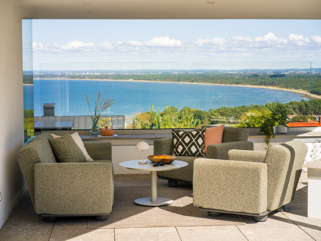 Bolster suddar ut gränsen mellan inne och ute med en design som påminner om en innesoffa men anpassad för utomhusbruk. Dynorna är enkla att ta av och förvara, vilket gör den både praktisk och stilren.
