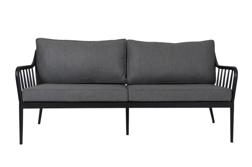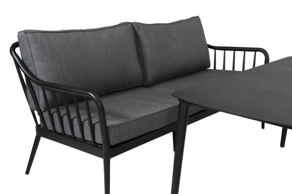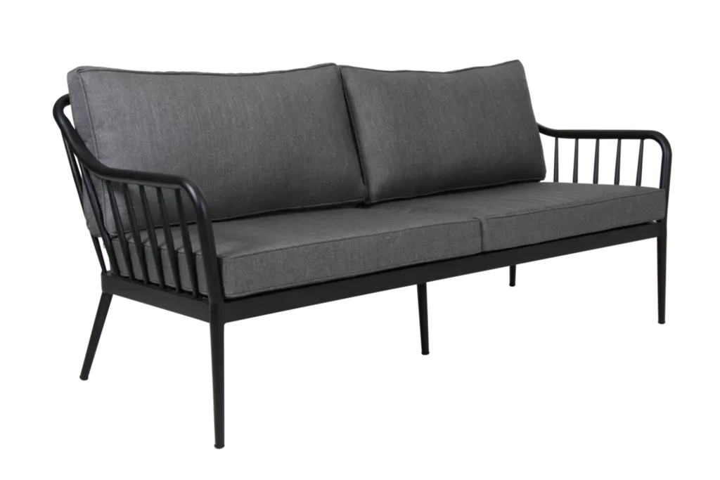 Skapa en elegant och tidlös utemiljö med Brafab Coleville Soffa i svart. Denna soffa kombinerar mjuka former med både klassiska och moderna linjer, vilket ger ett stilrent uttryck. Den robusta ramen i pulverlackerad aluminium motverkar effektivt rost, vilket gör den idealisk för utomhusbruk.