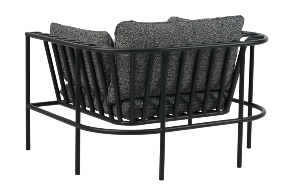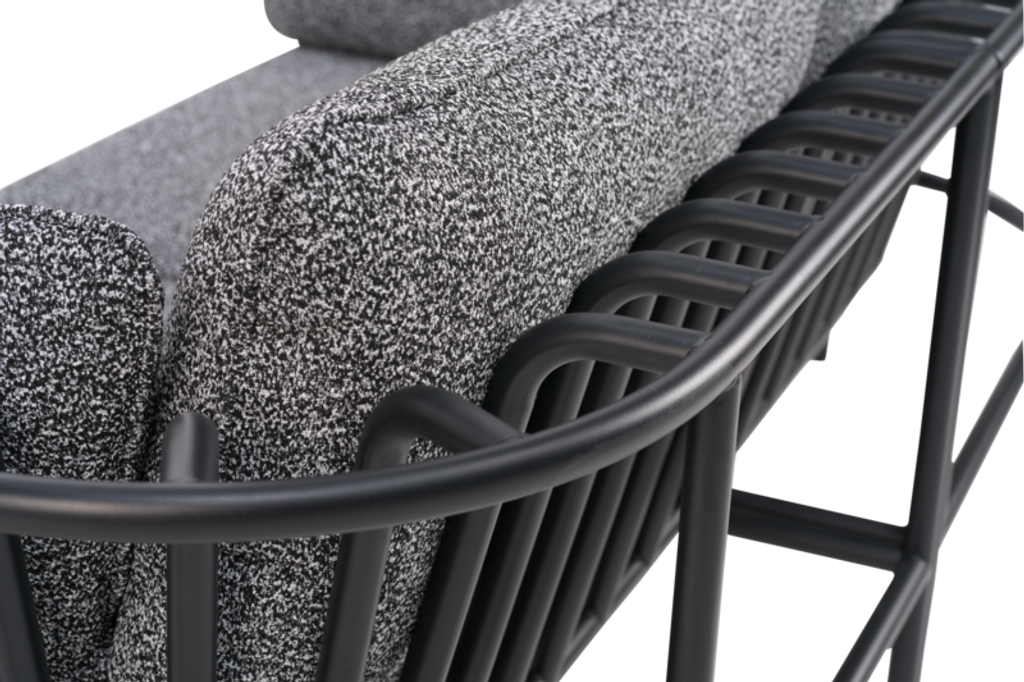 Stommen är tillverkad av robust aluminium som förstärker dess eleganta böjda linjer och ger en modern touch till din inredning. Det mjuka teddytyget i återvunnen polyester omsluter dynorna, vilket ger en exceptionell komfort och en hållbar design. Dessutom är dynorna utrustade med halkskydd och diskreta kopplingar som håller modulerna på plats.