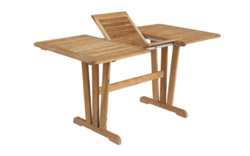Elegant teakbord för uteplatsen med praktisk butterflyskiva, justerbart från 125 till 185 cm.