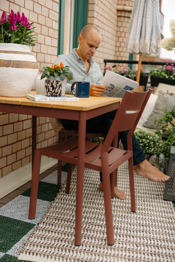 Upplev komfort och stil med Brafab Delia matstol i den livfulla färgen Zin Red. Denna matstol kombinerar ett modernt formspråk med praktisk funktionalitet, vilket gör den idealisk för såväl balkongen som trädgården. Dess stapelbara design sparar utrymme och gör den lätt att förvara.