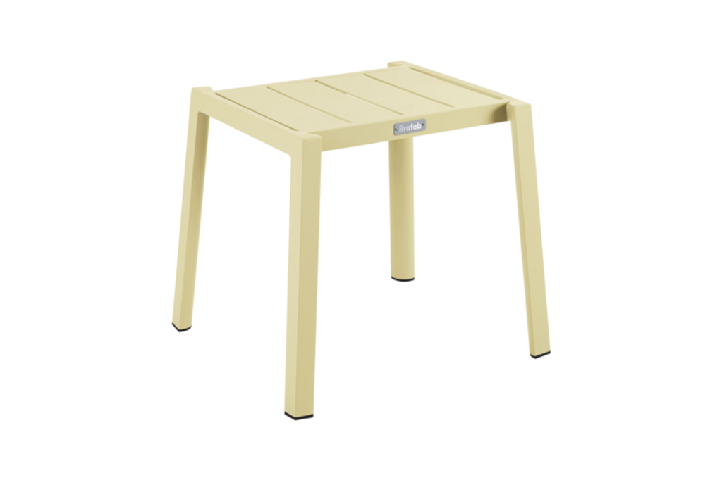 Upptäck Brafab Delia pall/sidobord i en uppfriskande citronfärg som lyfter din uteplats. Den är tillverkad i hållbar och underhållsfri aluminium med en stilren design som passar utmärkt i alla utomhusmiljöer. Med sina mått på 45x40 cm är den perfekt som både sidobord och extra sittplats.