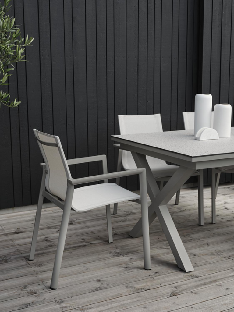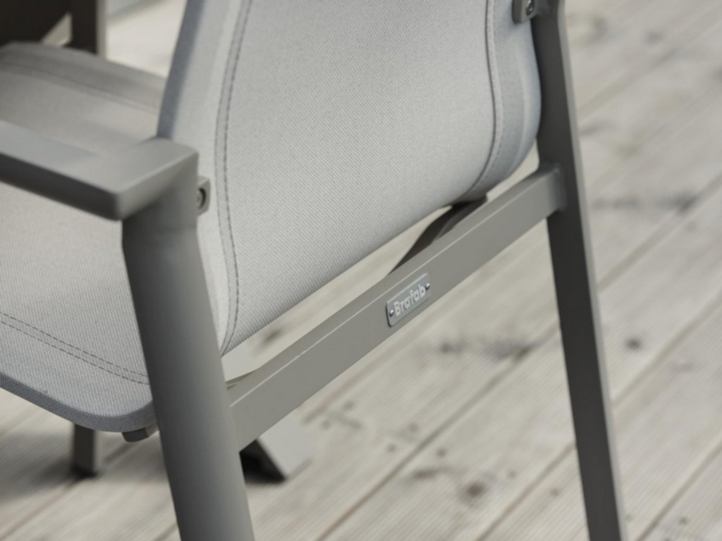 Denna stol är enkel att kombinera med Brafabs aluminiumbord för en komplett utemöbeluppsättning. Skapa en inbjudande atmosfär utomhus med Delia, där stil möter funktionalitet på bästa sätt.