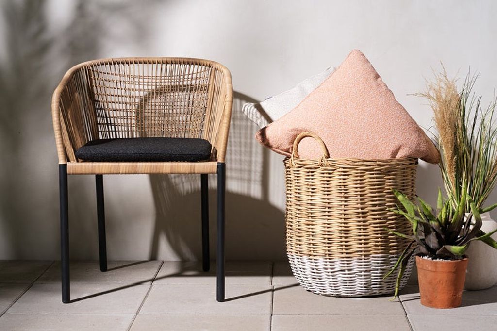Denna stol är inte bara funktionell utan också en estetisk tillgång till ditt hem, med sin naturliga wicker-finish och sofistikerade svarta detaljer.