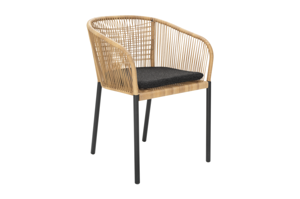 Delta är en elegant och bekväm stol från Brafab, perfekt för både inomhus- och utomhusbruk. Stolen kombinerar en stilren flätad konstrottingdesign i jordnära toner med en robust konstruktion. Den pulverlackerade aluminiumstommen säkerställer lång livslängd och motverkar rost, vilket gör stolen idealisk för alla väderförhållanden.