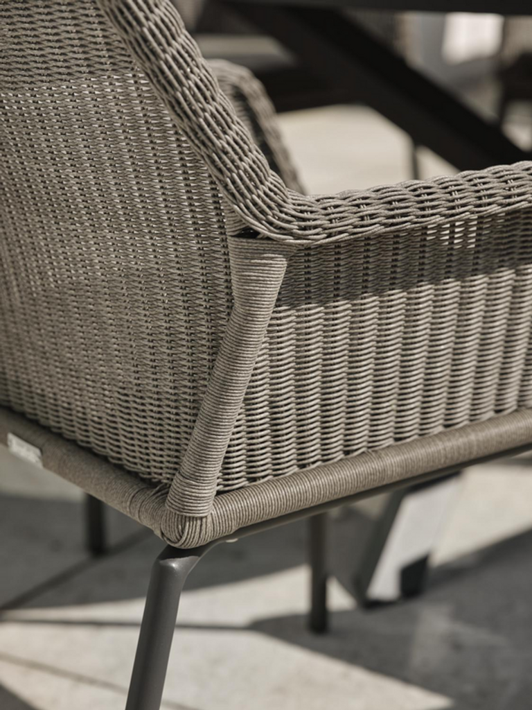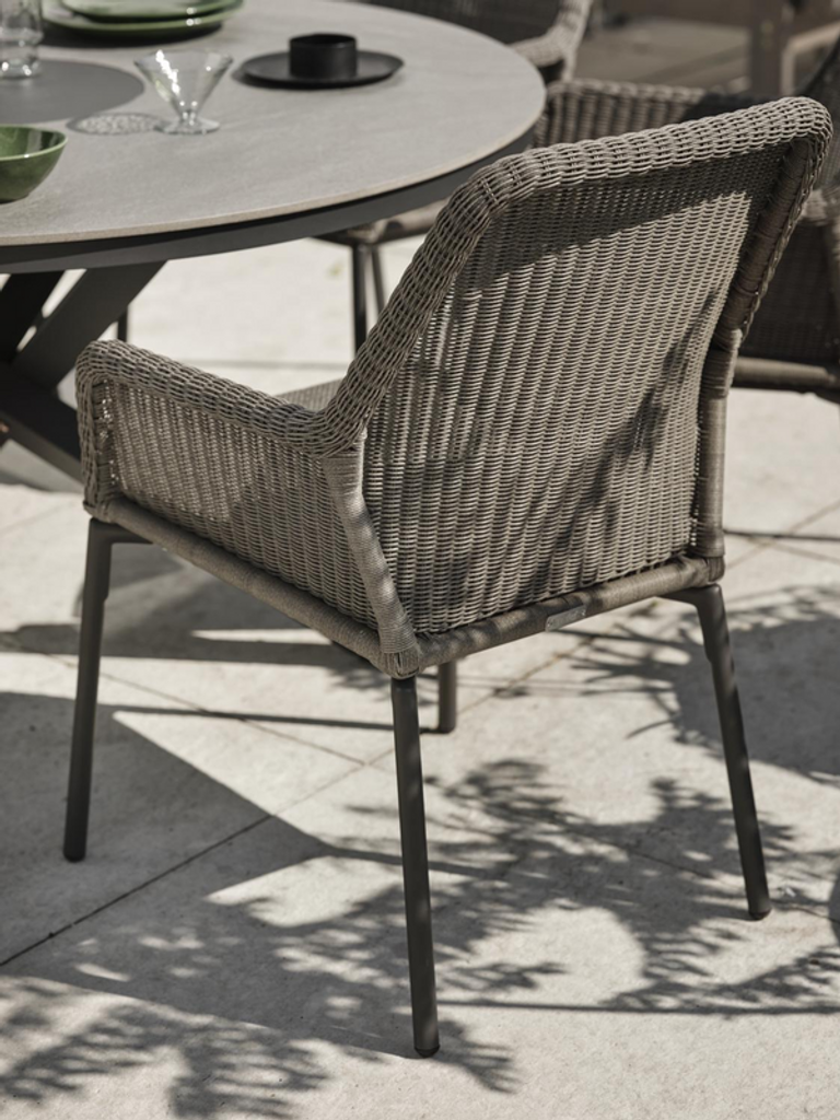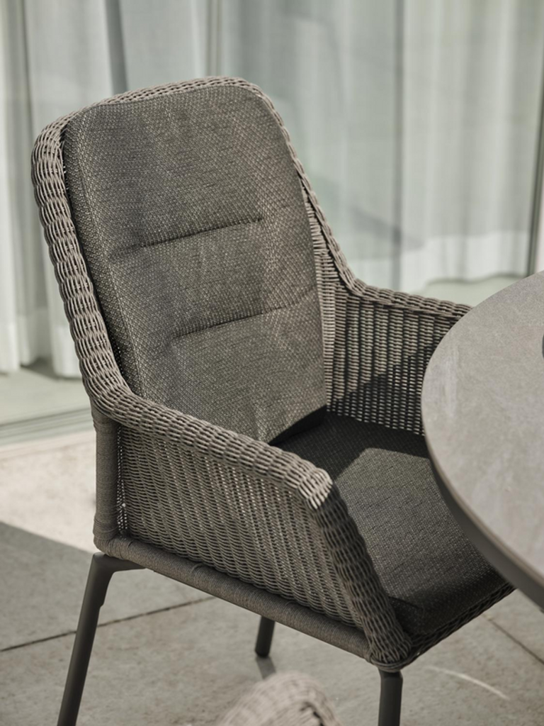 Dimma Karmstol från Brafab kombinerar exklusivitet och komfort. Perfekt för elegant utomhusbruk året runt.