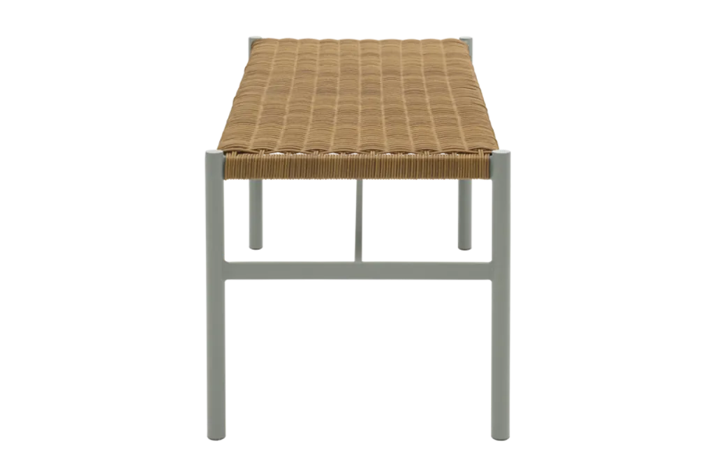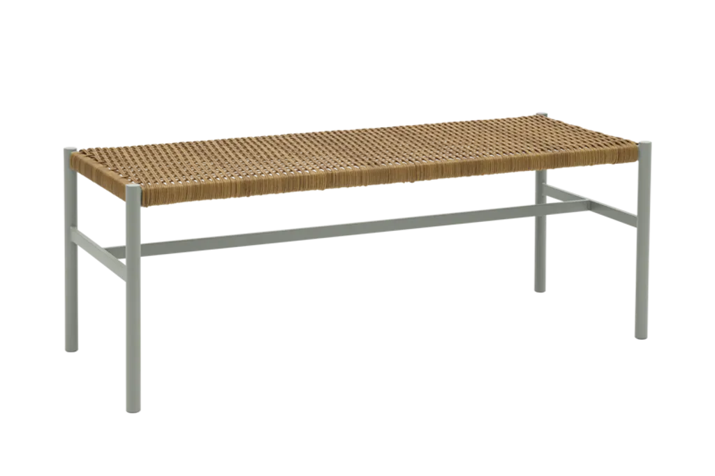 Den robusta stommen är tillverkad i aluminium, vilket gör bänken lätt och enkel att flytta samtidigt som den står emot väder och vind. Den grå färgen ger en modern och stilren look som lätt smälter in i olika miljöer.