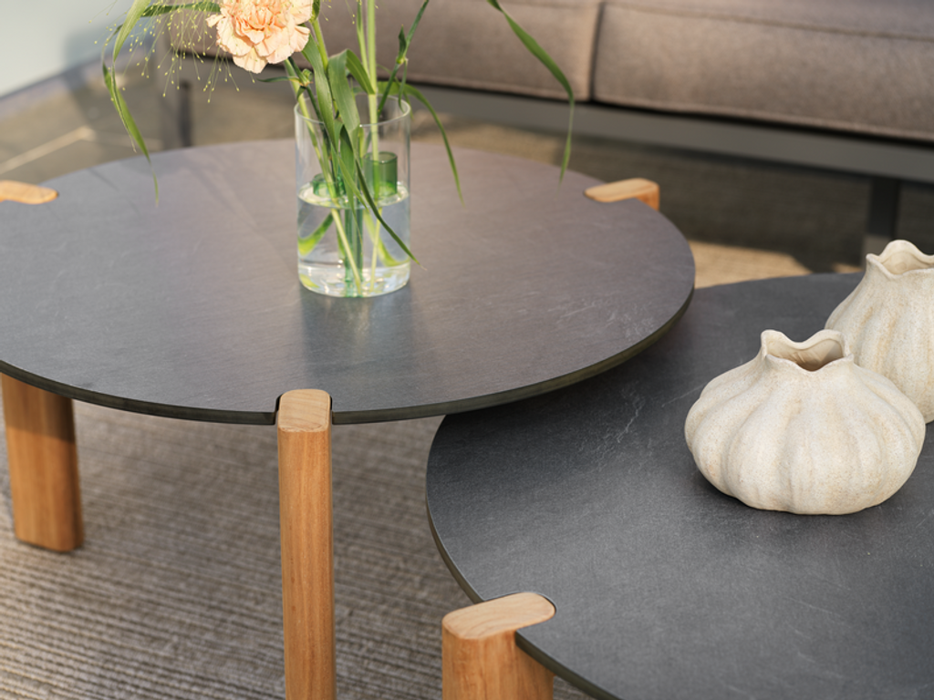 Upptäck Brafab Domino Soffbord Ø90 cm – ett stilrent och funktionellt soffbord som passar perfekt både inomhus och utomhus. Bordet är designat med robusta ben i naturlig teak som ger en varm och inbjudande känsla. Den grå laminatskivan är inte bara elegant utan också extremt slitstark och motståndskraftig mot väder och vardagens påfrestningar.