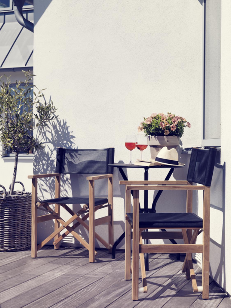 Drama regissörsstol i svart och teak från Brafab kombinerar stil och komfort, perfekt för nordiska uteplatser.