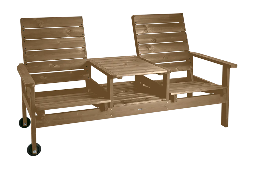 Tidlös 2-sitssoffa i impregnerad furu med justerbara lägen och inbyggda hjul för lätt placering.