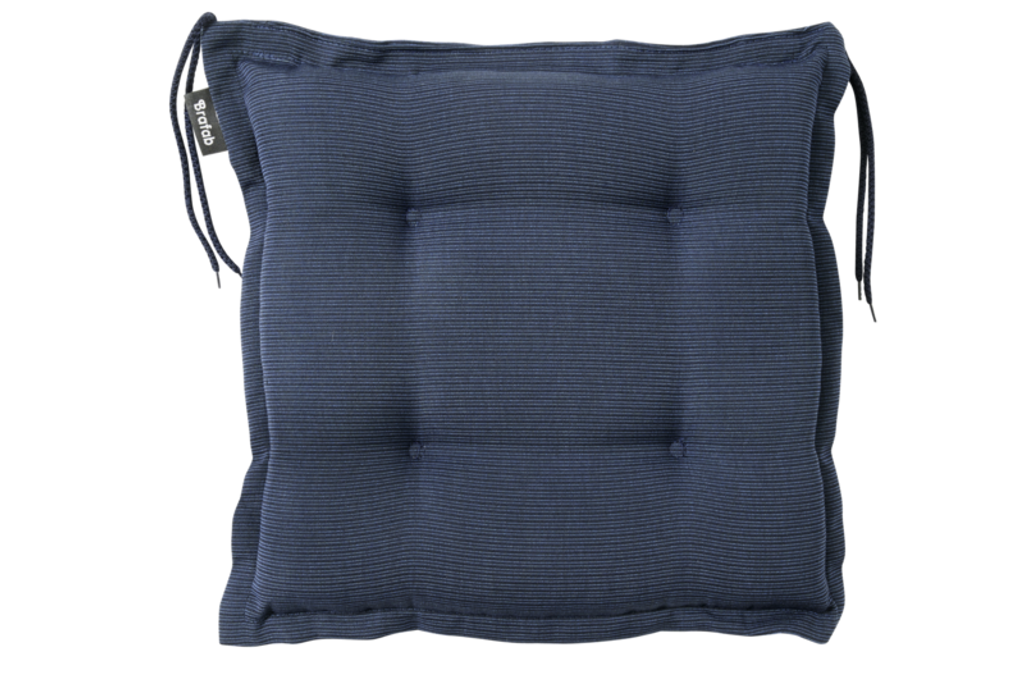 Hållbar och stilren sittdyna i blå dralon som bibehåller färg och komfort för utomhusmöbler.