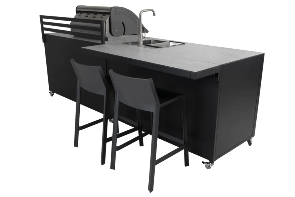 Förvandla din uteplats med det eleganta och moderna Brafab Fornax uteköket. Med en smart och genomtänkt design, erbjuder detta kök alla funktioner du behöver för att skapa en kulinarisk upplevelse utomhus. Den stilrena kombinationen av svart och grått ger ett sofistikerat utseende som passar perfekt i alla utomhusmiljöer.