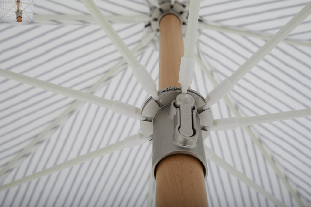 Tillverkad av slitstark polyester och robust bok, garanterar Gatsby-parasollet långvarig hållbarhet samtidigt som det erbjuder en sval och skyddad plats. Parasollet är tiltbar, vilket gör det enkelt att anpassa skuggan efter solens position.