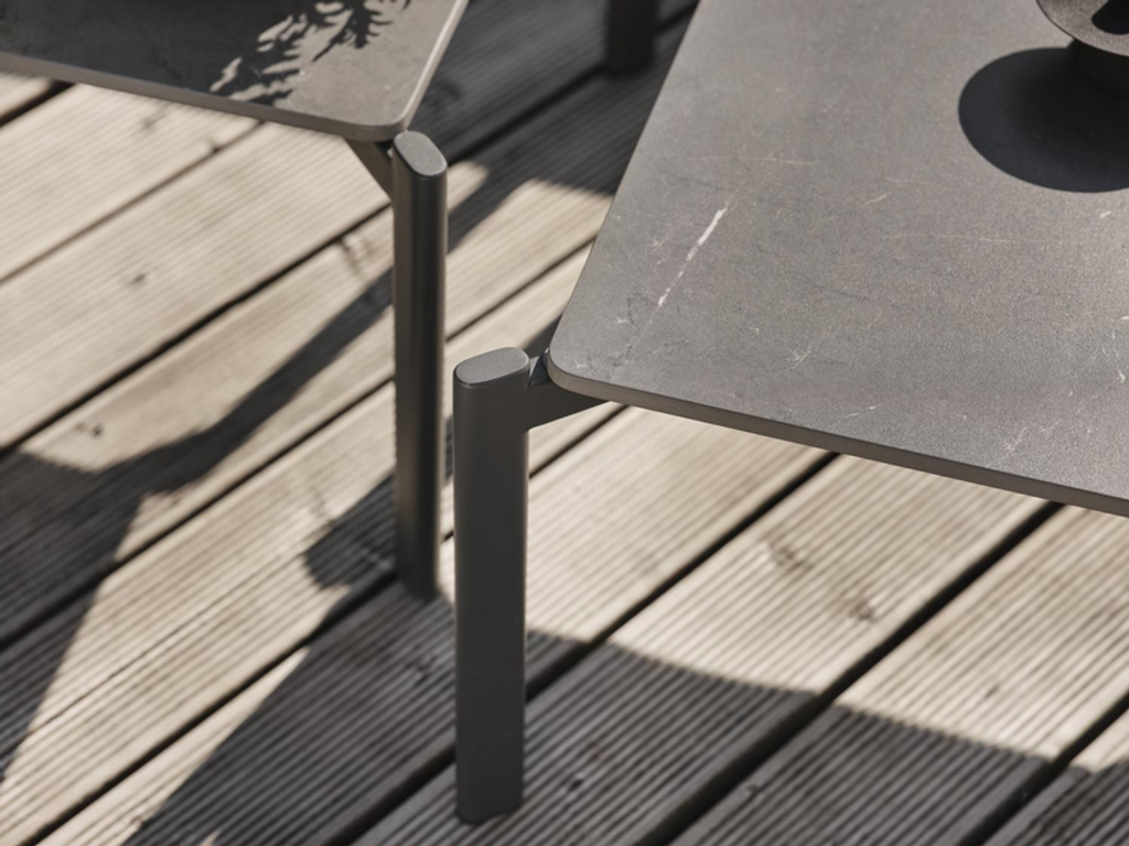 Elegant sidobord i kompositsten och aluminium. Perfekt för moderna loungeplatser, kombinerbart med olika soffgrupper.